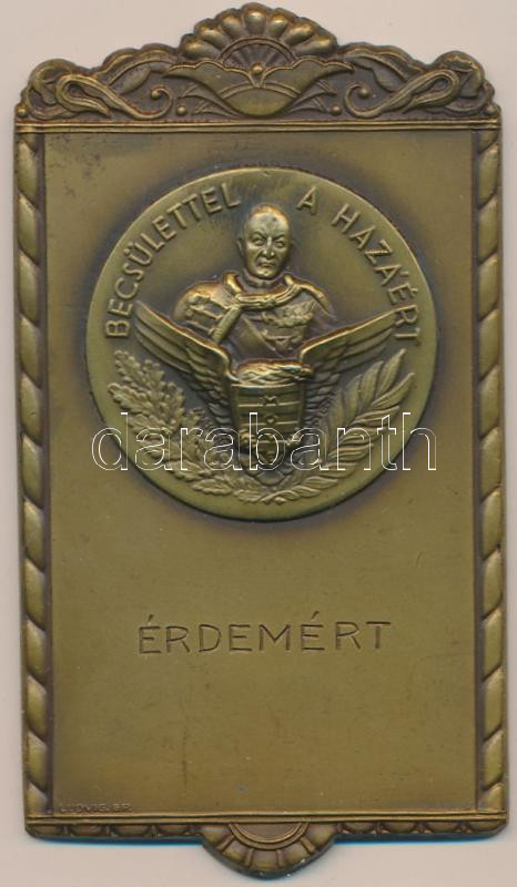 Leírás: Maklári / Mosler / Ludvig ~1940 "MOVE Becsülettel a Hazáért" Érdemért járó Br kitüntető plakett (85x50mm) eredeti dísztokban T:1-