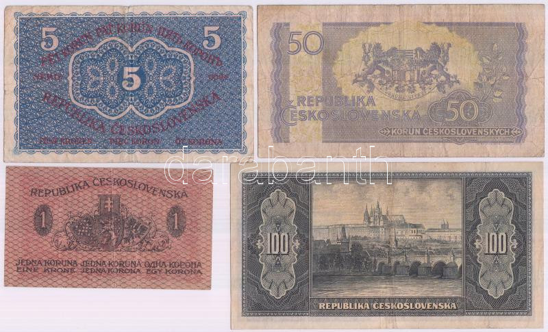 Czechoslovak... https://www.darabanth.com/hu/203-Gyorsarveres/203.0/Numizmatika/Kulfoldi-bankjegyek~12/Csehszlovakia-1919-1K-plus-5K-plus-1945-50K-plus-100K-TIII-III--3Cbr3ECzechoslovakia-1919-1-Korun-plus-5-Kor~II811508