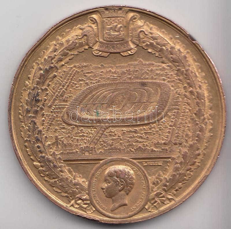 France 1867. "The Universal Exposition in Paris in the Champ-de-Mars" gold plated Br commemorative coin (50mm) C:aXF edge error