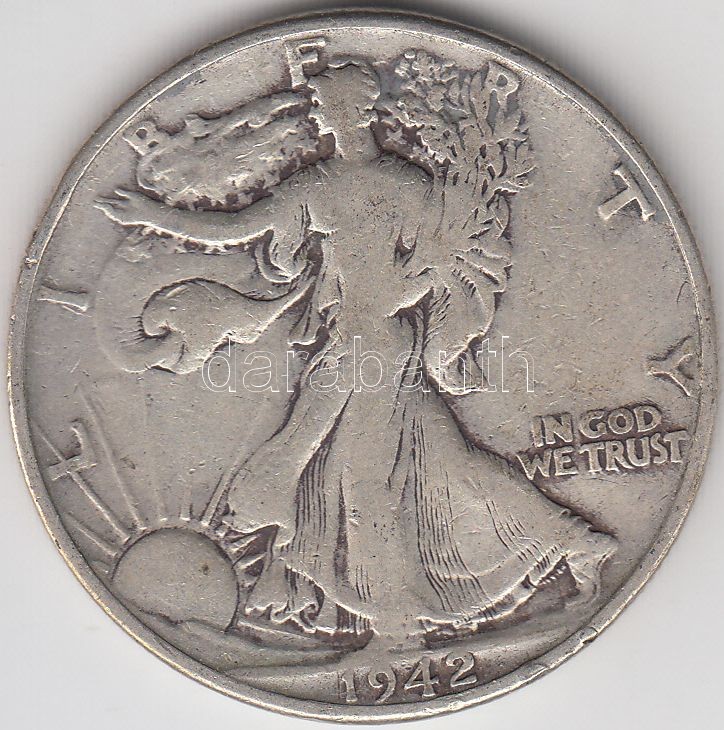 Amerikai Egyesült Államok 1942. 1/2$ Ag "Walking Liberty" T:... https://www.darabanth.com/hu/203-Gyorsarveres/203.0/Numizmatika/Kulfoldi-fem-es-ezustpenzek~13/Amerikai-Egyesult-Allamok-1942-12USD-Ag-Walking-Liberty-T3-3Cbr3EUSA-1942-12USD-Ag-Walking-Libe~II806588
