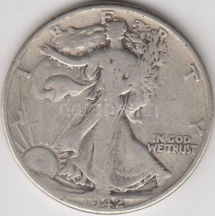 Amerikai Egyesült Államok 1942. 1/2$ Ag "Walking Liberty" T:... https://www.darabanth.com/hu/203-Gyorsarveres/203.0/Numizmatika/Kulfoldi-fem-es-ezustpenzek~13/Amerikai-Egyesult-Allamok-1942-12USD-Ag-Walking-Liberty-T3-3Cbr3EUSA-1942-12USD-Ag-Walking-Libe~II806589