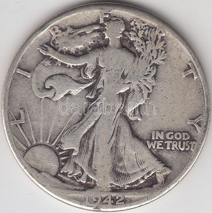 Amerikai Egyesült Államok 1942. 1/2$ Ag "Walking Liberty" T:... https://www.darabanth.com/hu/203-Gyorsarveres/203.0/Numizmatika/Kulfoldi-fem-es-ezustpenzek~13/Amerikai-Egyesult-Allamok-1942-12USD-Ag-Walking-Liberty-T3-3Cbr3EUSA-1942-12USD-Ag-Walking-Libe~II806591