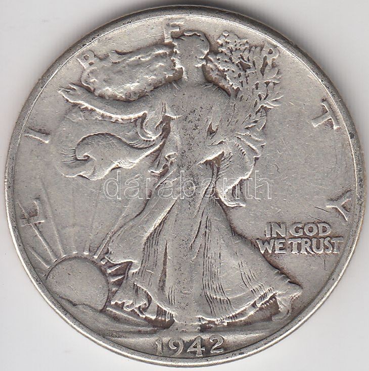 Amerikai Egyesült Államok 1942. 1/2$ Ag "Walking Liberty" T:... https://www.darabanth.com/hu/203-Gyorsarveres/203.0/Numizmatika/Kulfoldi-fem-es-ezustpenzek~13/Amerikai-Egyesult-Allamok-1942-12USD-Ag-Walking-Liberty-T3-3Cbr3EUSA-1942-12USD-Ag-Walking-Libe~II806595