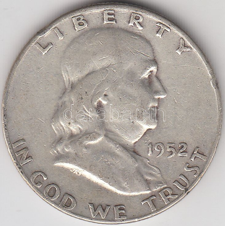 USA 1... https://www.darabanth.com/hu/203-Gyorsarveres/203.0/Numizmatika/Kulfoldi-fem-es-ezustpenzek~13/Amerikai-Egyesult-Allamok-1952D-12USD-Ag-Franklin-T3-3Cbr3EUSA-1952D-Half-Dollar-Ag-Franklin-C~II806739