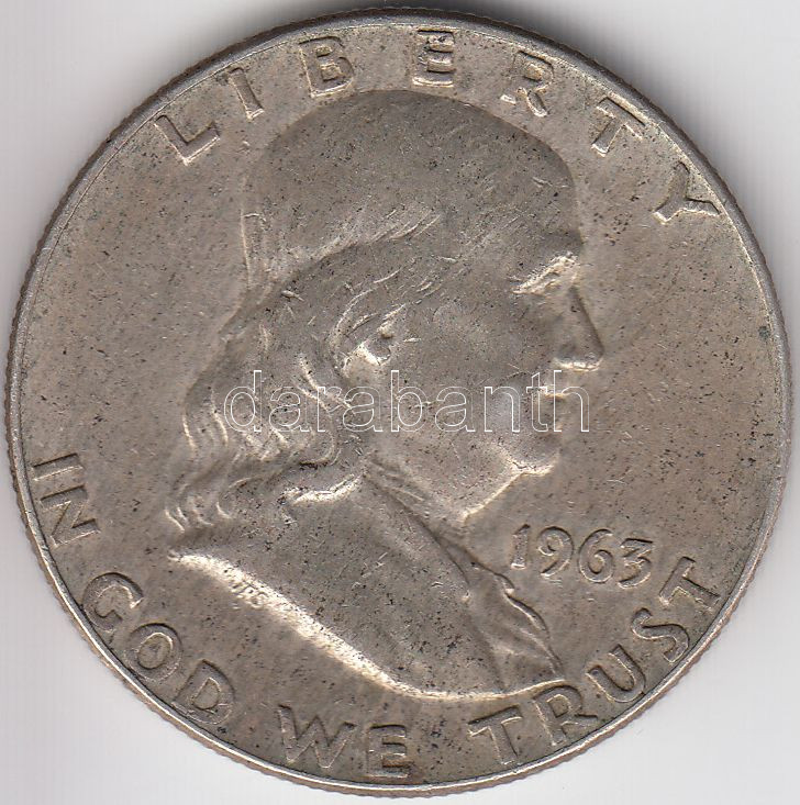 USA 1... https://www.darabanth.com/hu/203-Gyorsarveres/203.0/Numizmatika/Kulfoldi-fem-es-ezustpenzek~13/Amerikai-Egyesult-Allamok-1963D-12USD-Ag-Franklin-T3-3Cbr3EUSA-1963D-Half-Dollar-Ag-Franklin-C~II810359