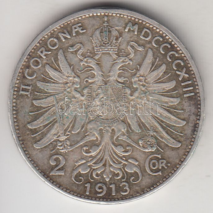 Austria 1913. 2 Corona Ag C:XF https://www.darabanth.com/hu/203-Gyorsarveres/203.0/Numizmatika/Kulfoldi-fem-es-ezustpenzek~13/Ausztria-1913-2K-Ag-T2-3Cbr3EAustria-1913-2-Corona-Ag-CXF~II808480