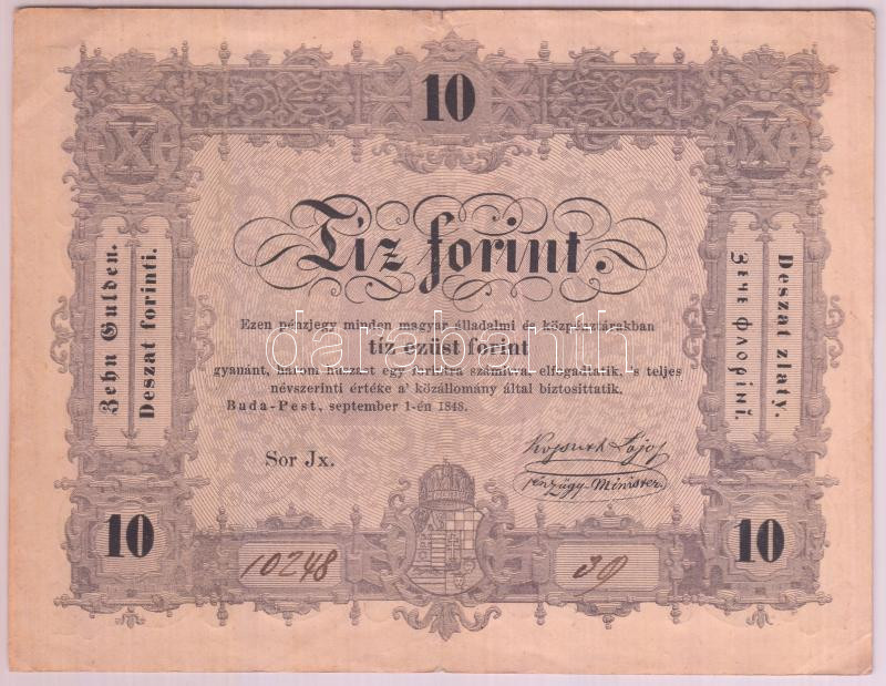 1848. 10Ft "Kossuth-bankó" T:III
