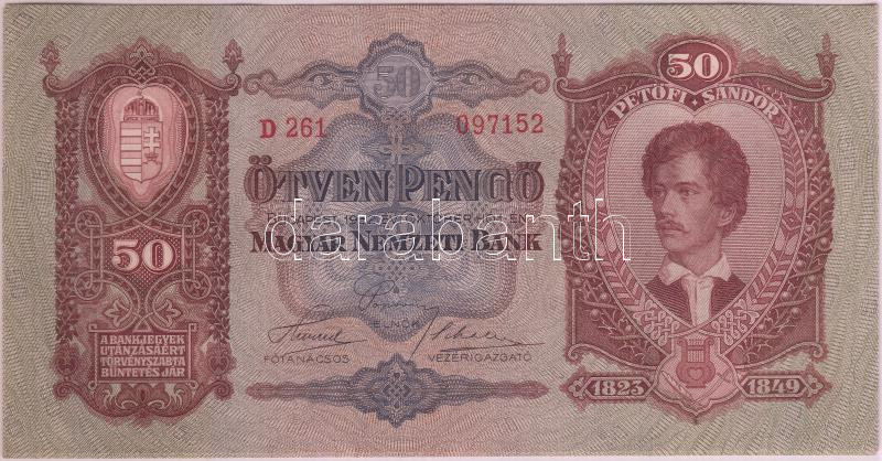 Leírás: 1932. 50P (2x) egymás utáni sorszámmal T:I-(enyhe sarokkopás)