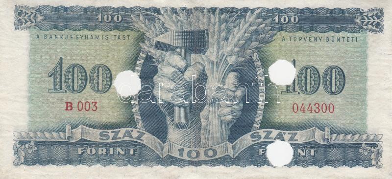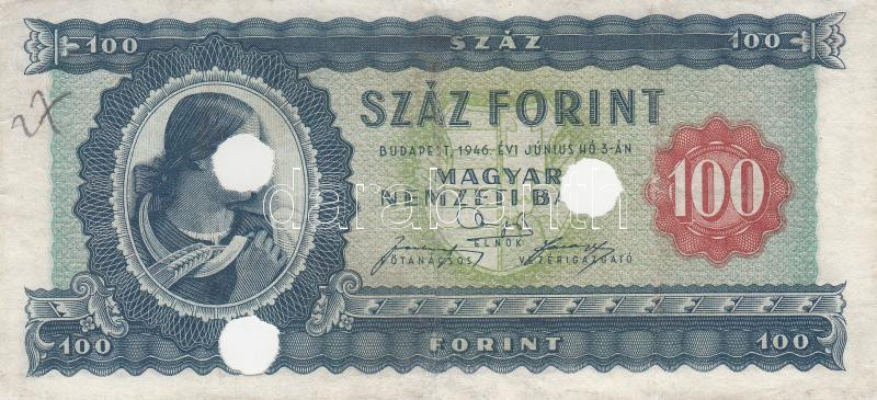 Leírás: 1946. 100Ft "B003 044300" lyukasztással érvénytelenítve T:restaurált