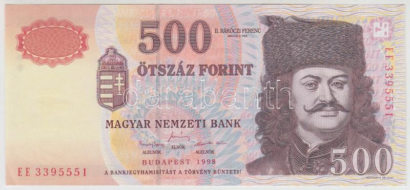Leírás: 1998. 500Ft "EE" T:I-(enyhe sarokhajlás)