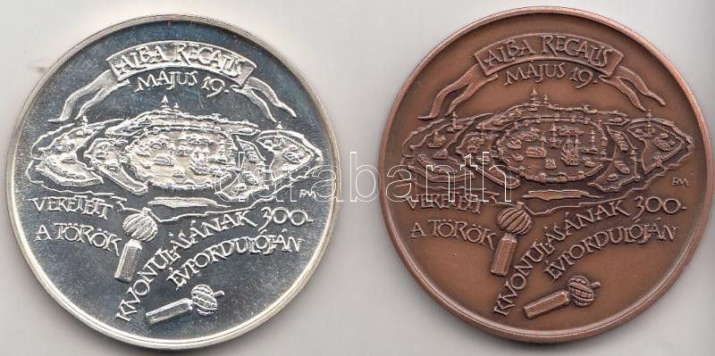 Fritz Mihály (1947-) / Szabó Géza (1939-) 1988. "MÉE Székesfehérvár - Török kivonulásának 300. évfordulója" Ag(0.900)/35,58g és Br emlékérem pár (42,5mm) T:PP,1