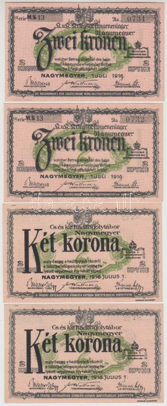 Leírás: Nagymegyer / hadifogolytábor 1916. július 1. 2K (4x) egymás utáni sorszámmal "MS" arab sorozat- és sorszámmal T:I,I-