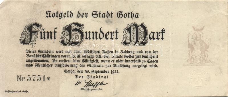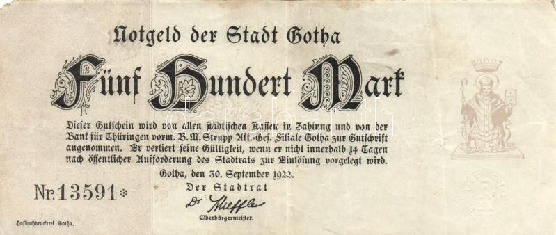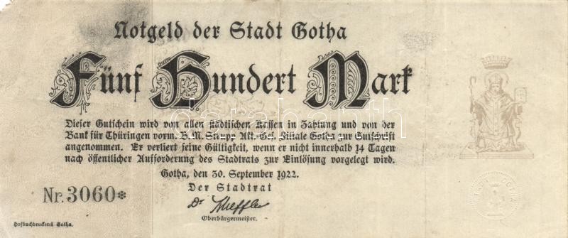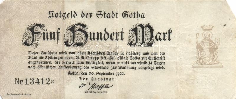 Leírás: Német Birodalom / Weimari Köztársaság / Gotha 1922. 500M (5x) T:III