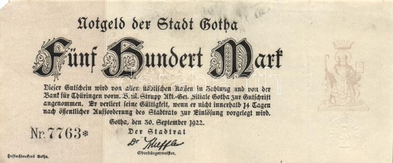Német Birodalom / Weimari Köztársaság / Gotha 1922. 500M (5x) T:III