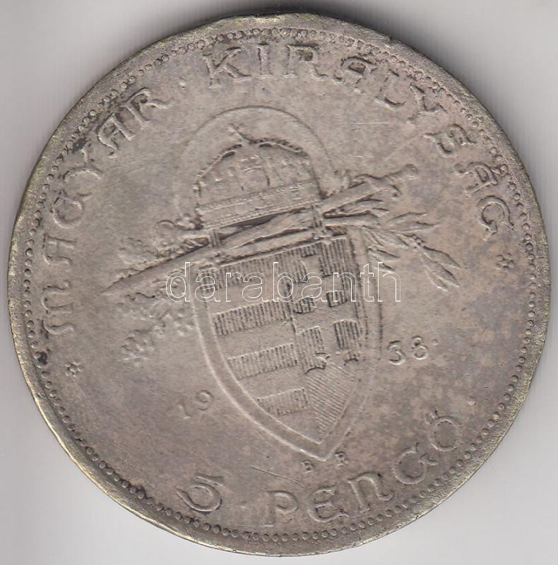 Adamo P8.1 https://www.darabanth.com/hu/203-Gyorsarveres/203.0/Numizmatika/Magyar-fem-es-ezustpenzek~9/1938-5P-Ag-Szent-Istvan-T2-ph-3Cbr3EAdamo-P81~II796176