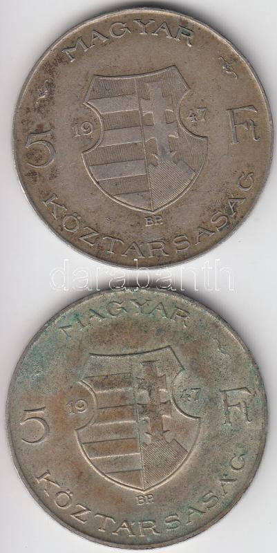 1947. 5Ft Ag "Kossuth" (2x) T:2-,3