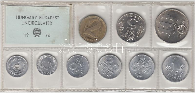 1974. 2f-10Ft 9db klf érmés forgalmi sor fóliatokban T:1 https://www.darabanth.com/hu/203-Gyorsarveres/203.0/Numizmatika/Magyar-fem-es-ezustpenzek~9/1974-2f-10Ft-9db-klf-ermes-forgalmi-sor-foliatokban-T1~II807676