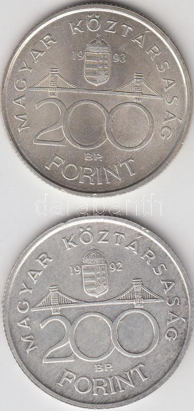 Leírás: 1992-1993. 200Ft Ag "MNB" (2x) T:2