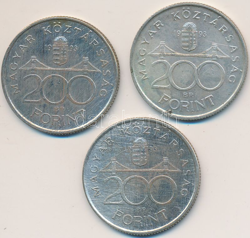 1993. 200Ft Ag "MNB" (3x) T:2-