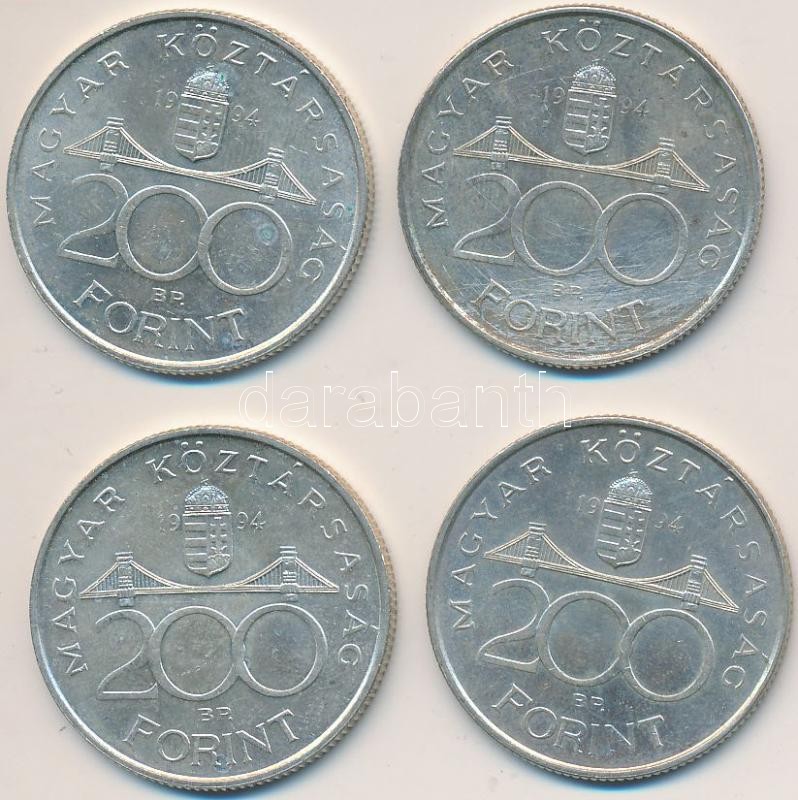 Leírás: 1994. 200Ft Ag "Deák" (4x) T:2-,3