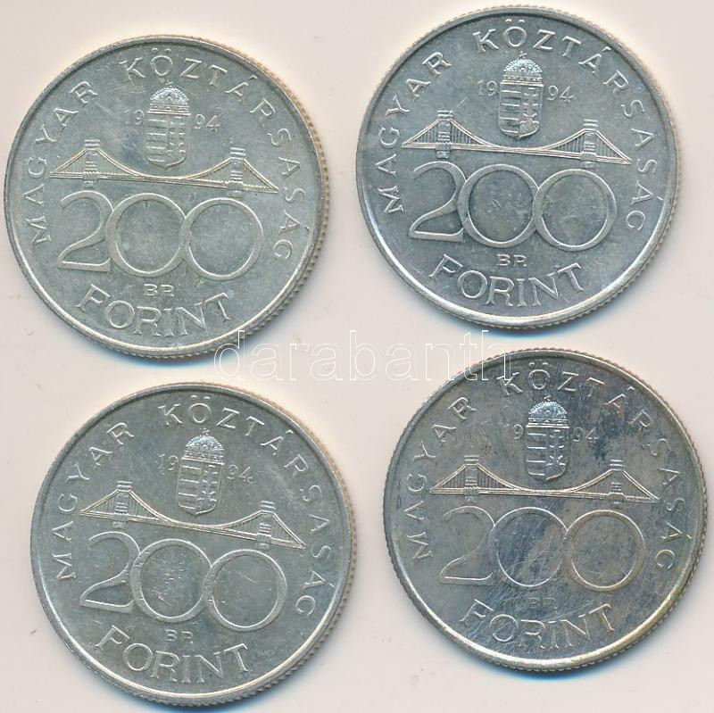 Leírás: 1994. 200Ft Ag "Deák" (4x) T:2-,3