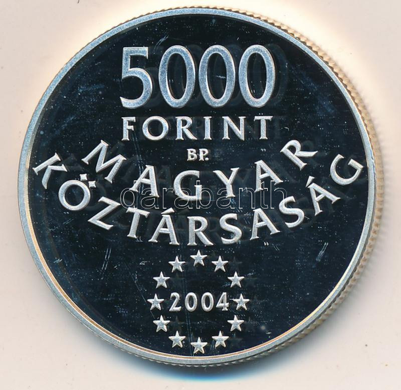2004. 5000Ft Ag "Magyarország az EU tagja" T:PP https://www.darabanth.com/hu/203-Gyorsarveres/203.0/Numizmatika/Magyar-fem-es-ezustpenzek~9/2004-5000Ft-Ag-Magyarorszag-az-EU-tagja-TPP~II809883