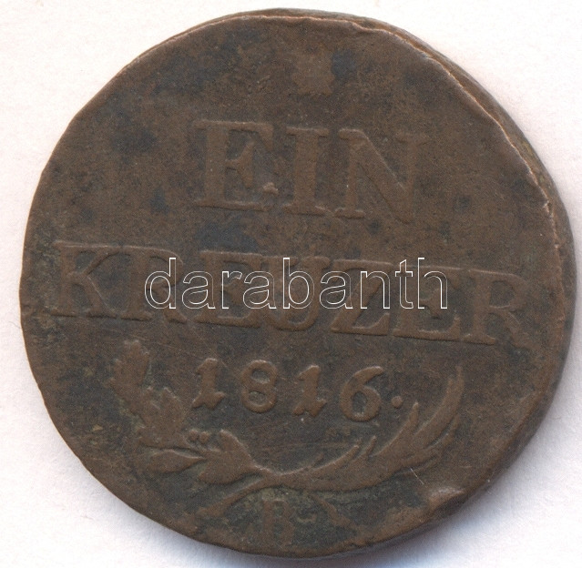 Ausztria/magyar verdejel 1816B 1Kr T:3,3- https://www.darabanth.com/hu/203-Gyorsarveres/203.0/Numizmatika/Magyar-fem-es-ezustpenzek~9/Ausztriamagyar-verdejel-1816B-1Kr-T3-3-~II708181