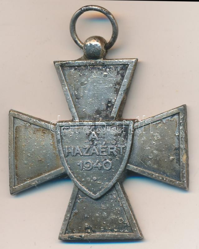 Leírás: 1940. "Nemzetvédelmi Kereszt / A Hazáért" kitüntetés mellszalag nélkül T:2