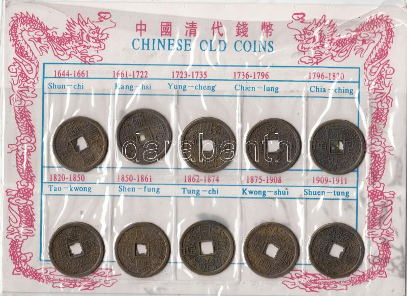 Leírás: Kína 1644-1911. "Kínai régi pénzek" 10db pénzmásolat szettben T:2
