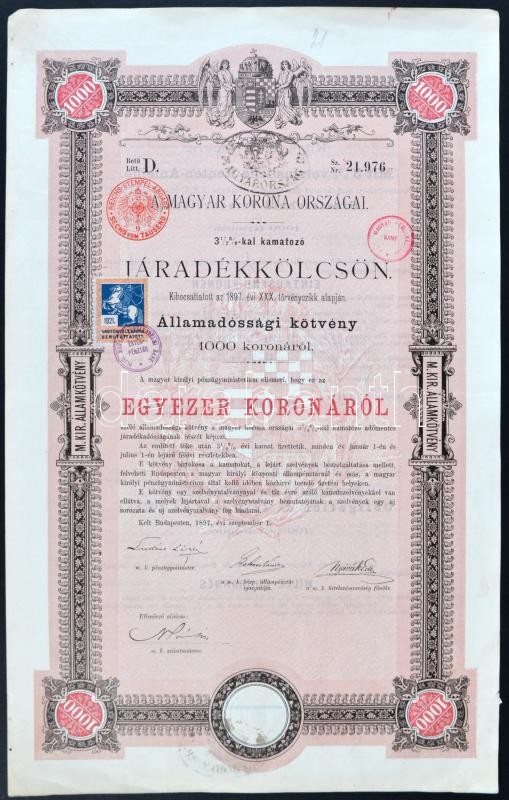 9db különféle magyar és külföldi záloglevél, részvény és sorsjegy, közte Budapest 1888. "Magyarországi Jószív Egyesület" sorsjegye, pecsételéssel 2Ft-ról magyar és német nyelven, Szekszárd 1924. "Szekszárdi Takarékpénztár" 10db részvénye egyenként 25.000K-ról felülbélyegzésekkel stb. T:vegyes