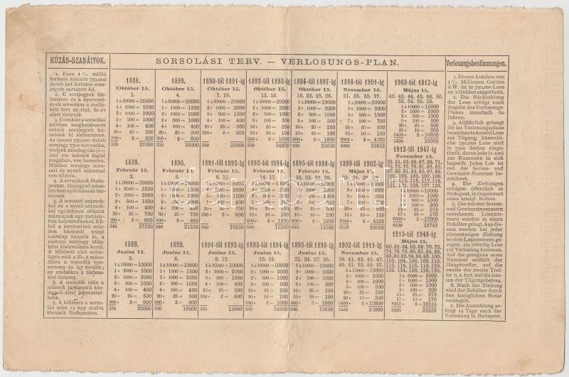 Leírás: Budapest 1888. "Magyarországi Jószív Egyesület" sorsjegye, pecsételéssel 2Ft-ról magyar és német nyelven T:II-