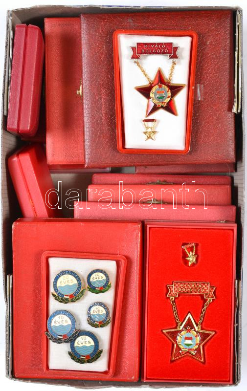 Leírás: 16db vegyes szocialista kitüntetés és emlékérem dísztokban T:1,2