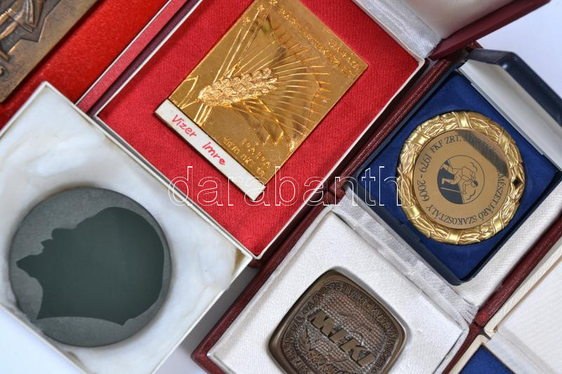 Leírás: 6db különféle plakett dísztokban, közte NSZK Meisseni porcelán emlékérem T:1,2