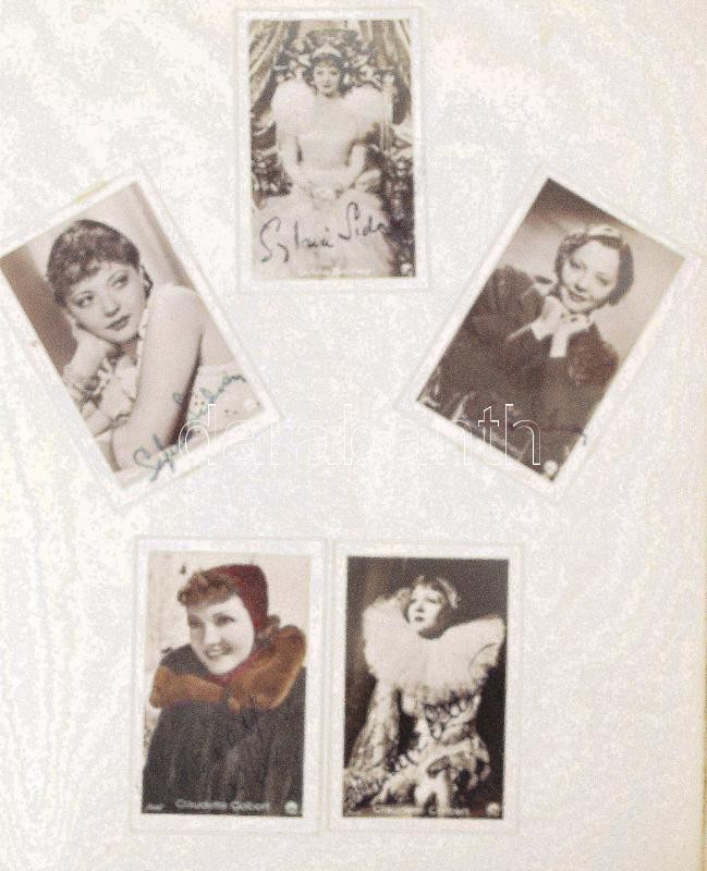 cca 1930-1940 334 db-os fotóalbum régi külföldi és magyar színészek fotóival és aláírásaival (Shirley Temple, Sylvia Sidney, Gretl Theimer, Lilian Harvey, Marta Eggerth, Honti Hanna)