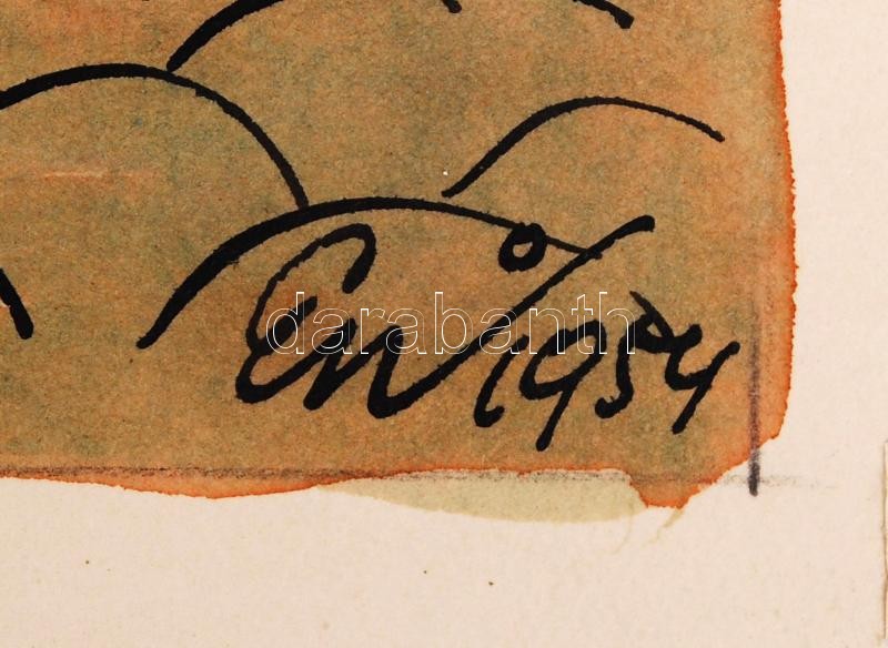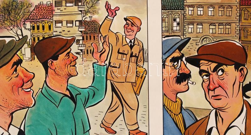 Leírás: Endrődi István( 1920-1988): Vajon melyik dolgozott jól? Vegyes technika, papír, jelzett, 25×36 cm
