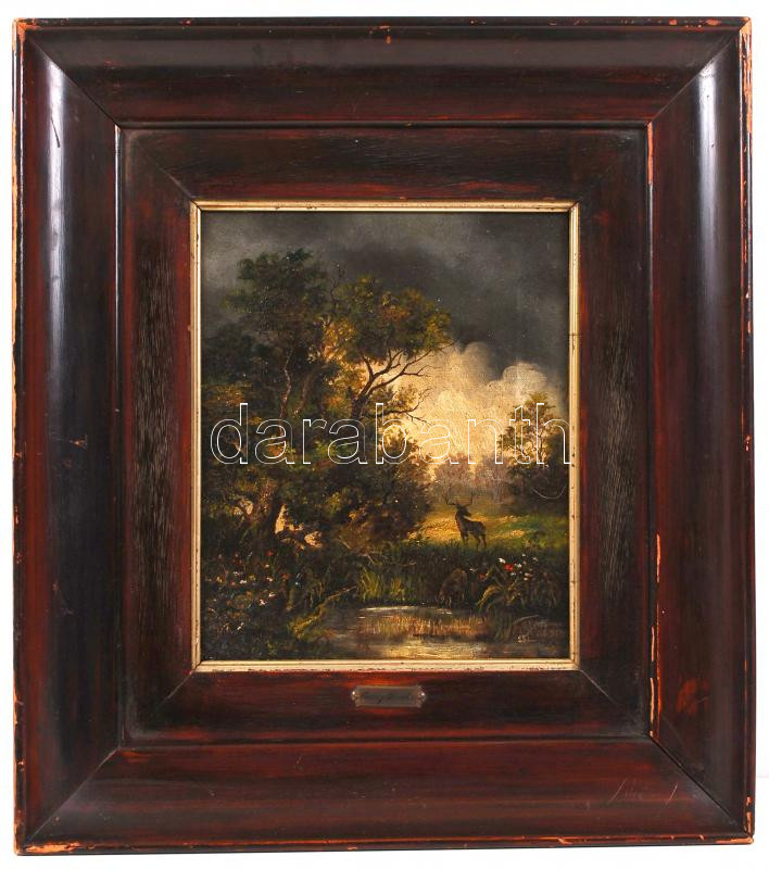 Leírás: Vecsey Tivadar (1885-?): Tisztás. Olaj, vászon, jelzett, apró hibákkal, keretben, 27×23 cm