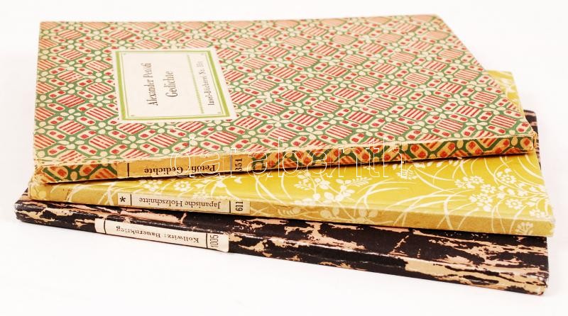 Petőfi, Alexander (Petőfi Sándor): Gedichte. Auswahl und Nachwort von Rober Gragger. Leipzig, Insel; Japanische Farbenholzschnitte. Auswahl und Geleitwort von Emil Preetorius. Leipzig, 1955, Insel-Verlag; Kollowitz, Käthe: Blätter über den Bauernkrieg. 31 Tafeln Herausgegeben von Harri Nündel. Leipzig, 1975, Insel-Verlag. Kiadói kartonált kötés, jó állapotban.