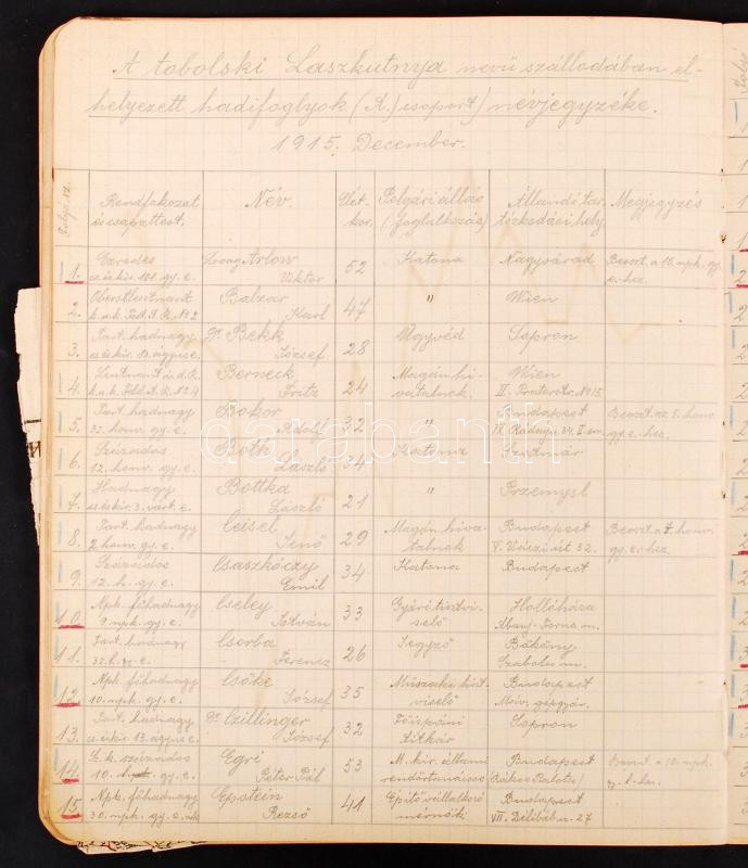 1917 A tobolski hadifogolytáborban raboskodó katona kézzel írt feljegyzései a tábor életéről: a fogloyk névsora és egyéb adatai!, hőmérsékleti és egyéb grafikonok, feljegyzések statisztikák