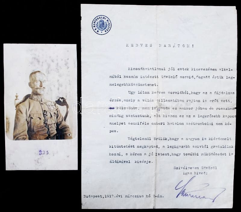 1917 Kölcsönös gratulációs levél Szurmay (aláírt) minisztertől, Szászy... https://www.darabanth.com/hu/204-Gyorsarveres/204.0/Festmeny-mutargy-papirregiseg-egyeb/Militaria~400011/1917-Kolcsonos-gratulacios-level-Szurmay-alairt-minisztertol-Szaszy-Agost-alezredesnek~II802229