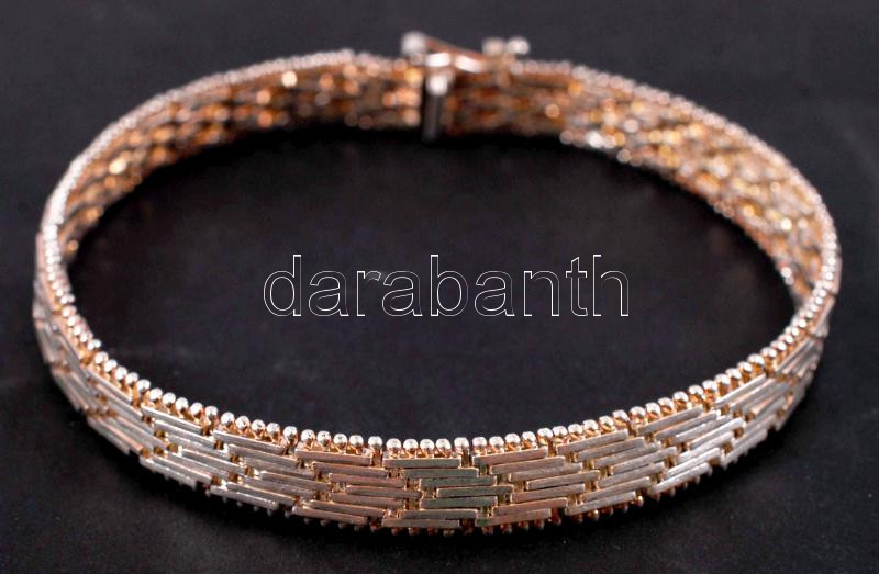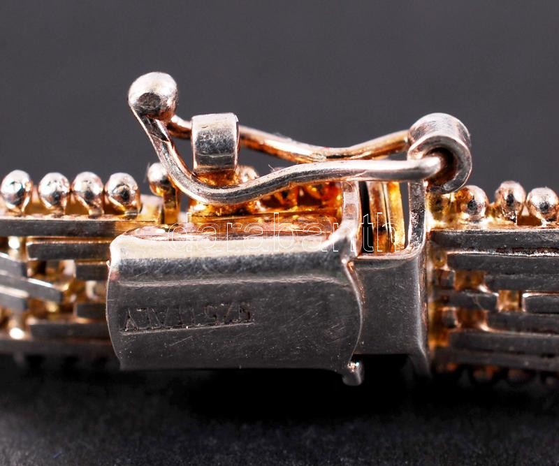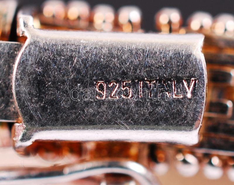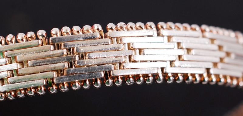 Leírás: Ezüst (Ag) karkötő flexibilis elemekből nyelves zárral, biztonsági csatolóval, jelzett, 15,9 g /