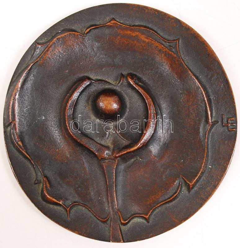 Leírás: Ligeti Erika (1934-2004): Virágzás. Bronz plakett, jelzett, d: 8 cm