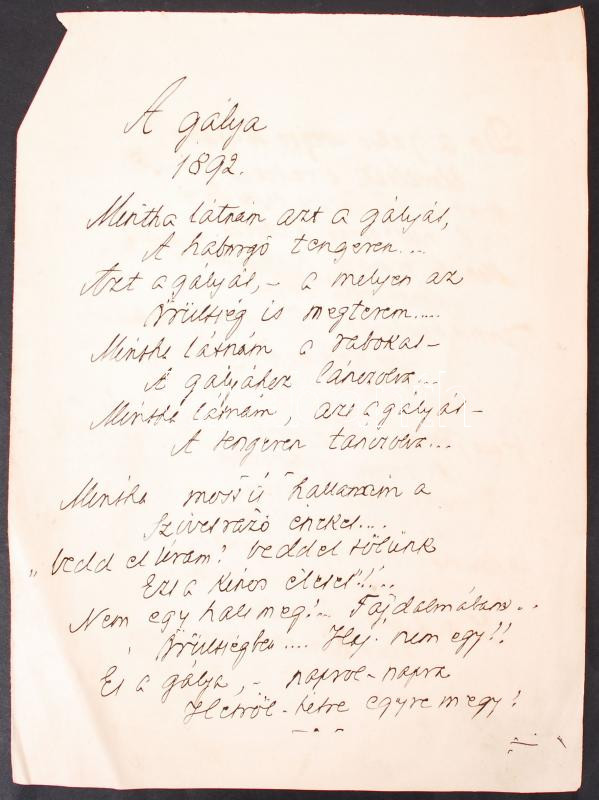 Leírás: 1892 Szabó Géza lelkész által írt A gólya és Rózsafelhő című versek kézirata