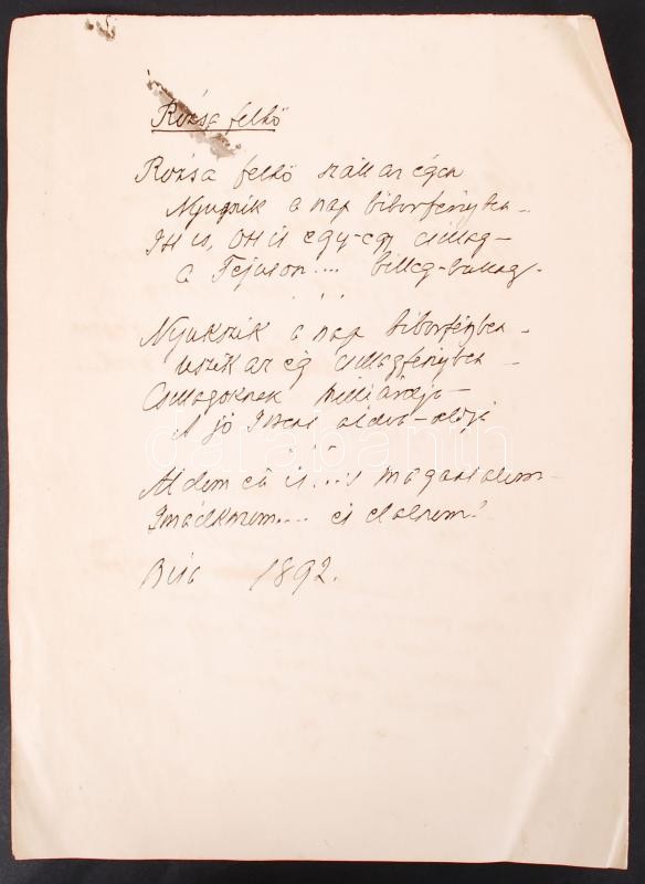 1892 Szabó Géza lelkész által írt A gólya és Rózsafelhő című versek ké... https://www.darabanth.com/hu/204-Gyorsarveres/204.0/Festmeny-mutargy-papirregiseg-egyeb/Tortenelmi-dokumentumok-keziratok-erdekessegek~400018/1892-Szabo-Geza-lelkesz-altal-irt-A-golya-es-Rozsafelho-cimu-versek-kezirata~II819073