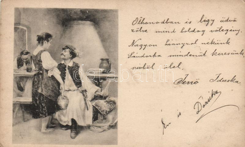 Hungarian folklore, artist signed art postcard https://www.darabanth.com/hu/204-Gyorsarveres/204.0/Kepeslapok/Folklor~1400303/Hungarian-folklore-artist-signed-art-postcard~II816067