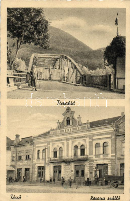 Técső, Tiszahíd, Korona szálló (EK) https://www.darabanth.com/hu/204-Gyorsarveres/204.0/Kepeslapok/Karpatalja~600008/Tecso-Tiszahid-Korona-szallo-EK~II813349