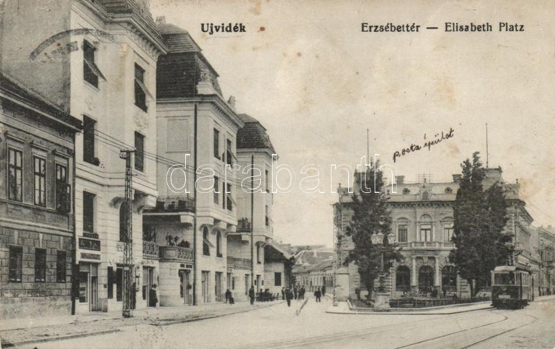 Újvidék, Erzsébet tér, Posta / square, post, tram (fl) https://www.darabanth.com/hu/204-Gyorsarveres/204.0/Kepeslapok/Vajdasag~600010/Ujvidek-Erzsebet-ter-Posta-square-post-tram-fl~II814855