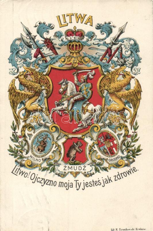 Lithuania coat of arms, litho (EK) https://www.darabanth.com/hu/204-Gyorsarveres/204.0/Kepeslapok/Zaszlo-Cimer~1400373/Lithuania-coat-of-arms-litho-EK~II815546
