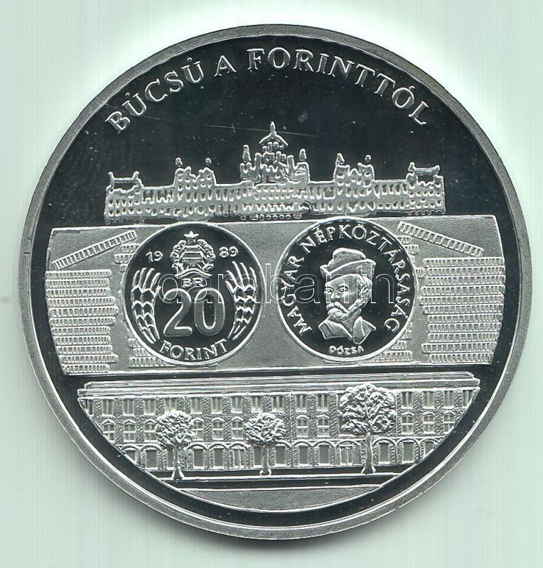 Leírás: "A magyar pénz krónikája - Búcsú a forinttól" Ag(999) emlékérem, (20g/38,61mm) T:PP Tanúsítvánnyal.2004db!