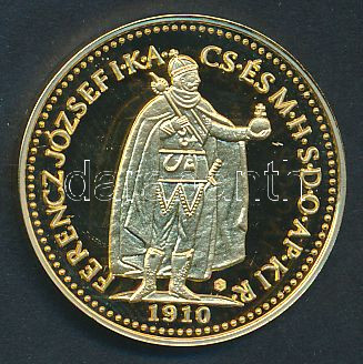 Leírás: DN "Magyar aranypénzek utánveretben - Ferenc József 10 korona" aranyozott Ag emlékérem (5.5g/0.999) T:PP