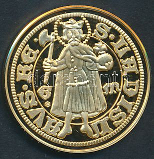 Leírás: DN "Magyar aranypénzek utánveretben - Mária aranyforint" aranyozott Ag emlékérem (5.5g/0.999) T:PP Tanúsítvánnyal